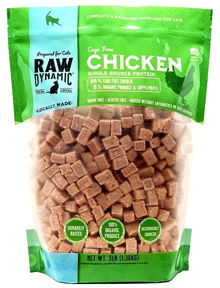Raw Dynamic Chicken Formula is formulated to meet the nutritional levels established by the AAFCO Cat Food Nutrient Profile for All Life Stages.